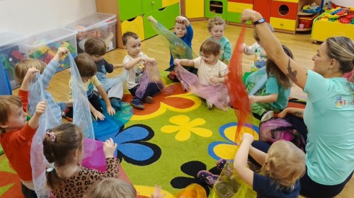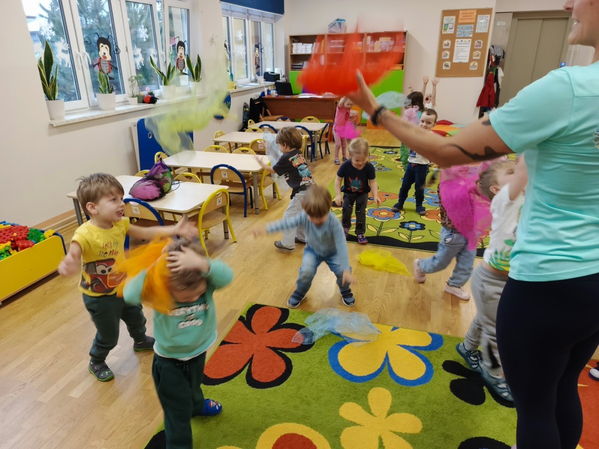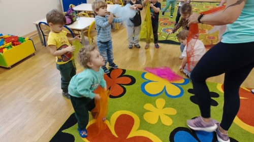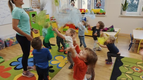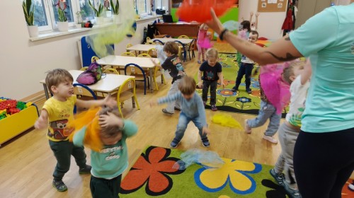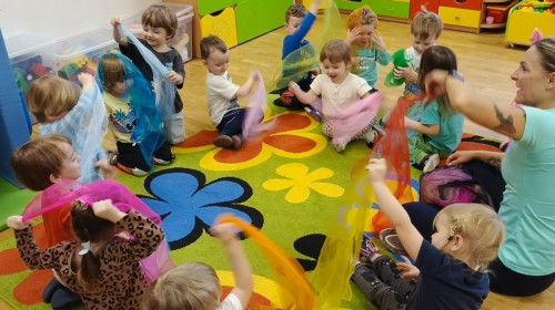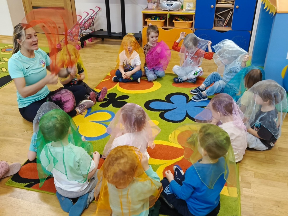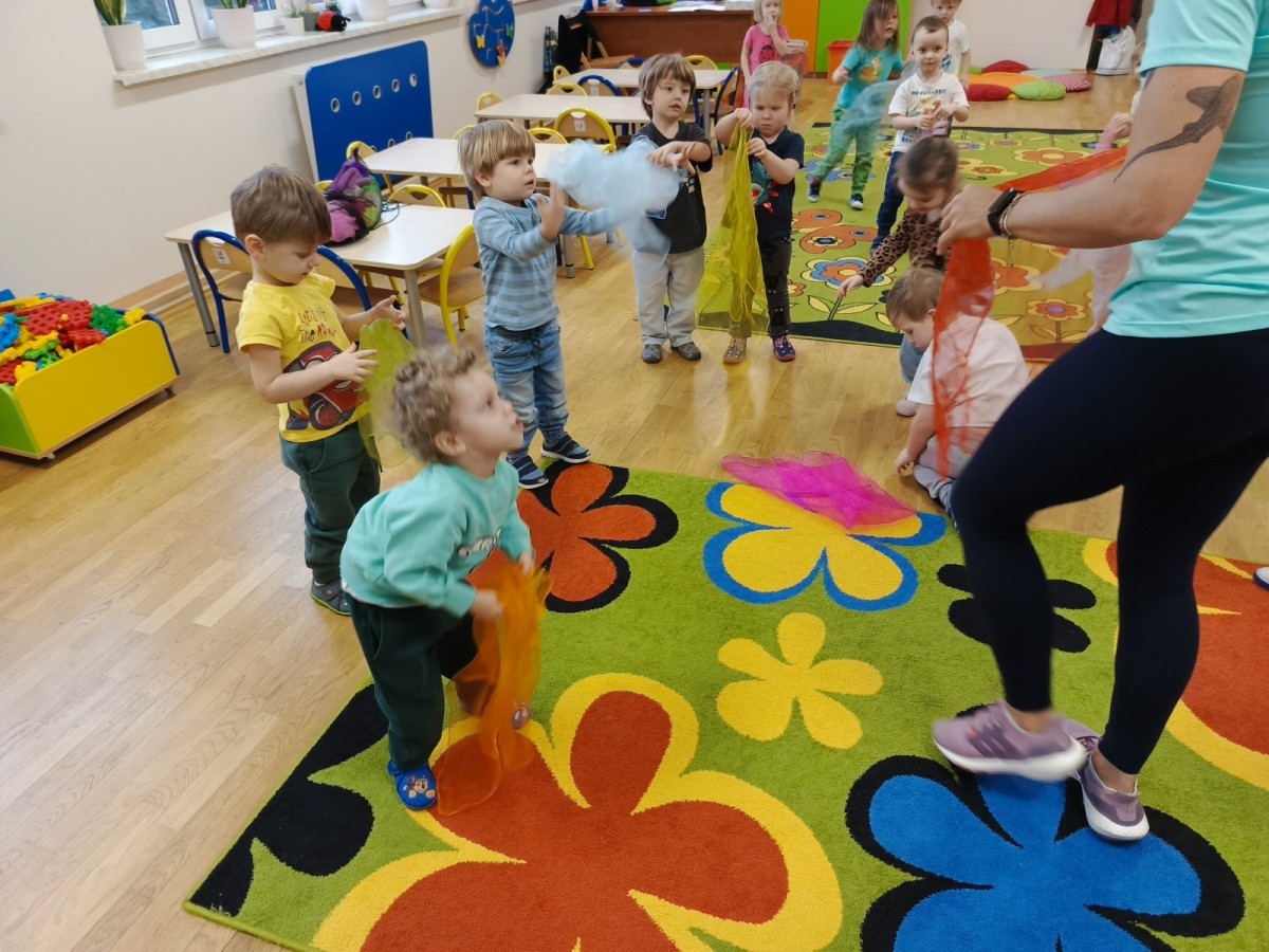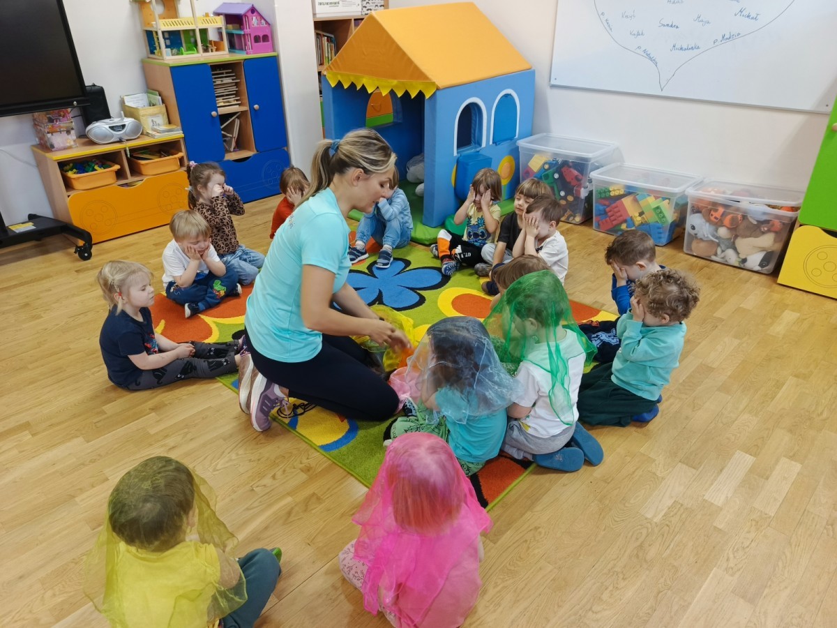 Za nami kolejne spotkanie w ramach zajęć Super Smyki. Tym razem "w roli głównej" kolorowe chustki.