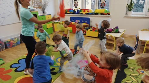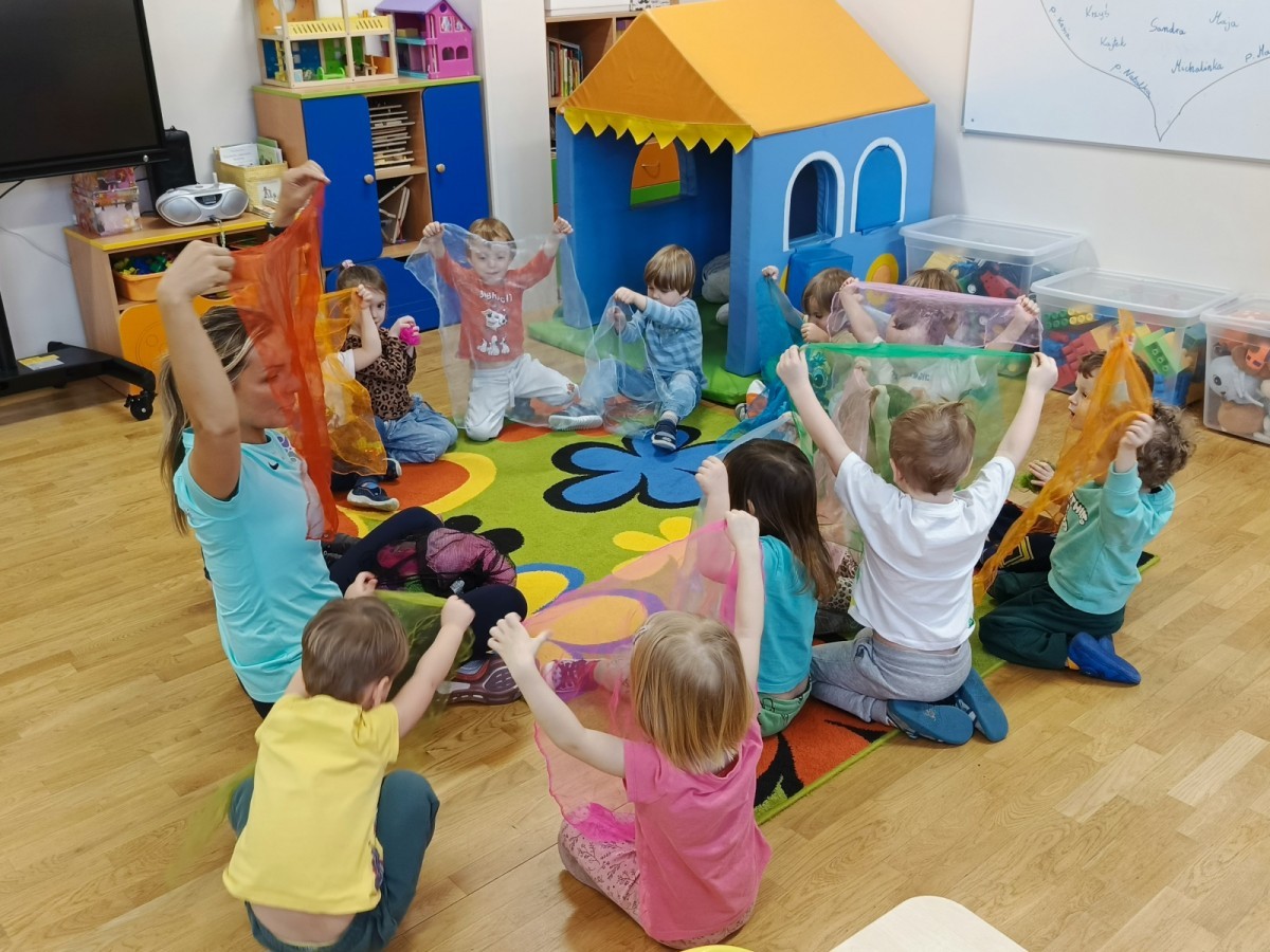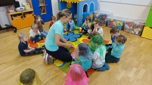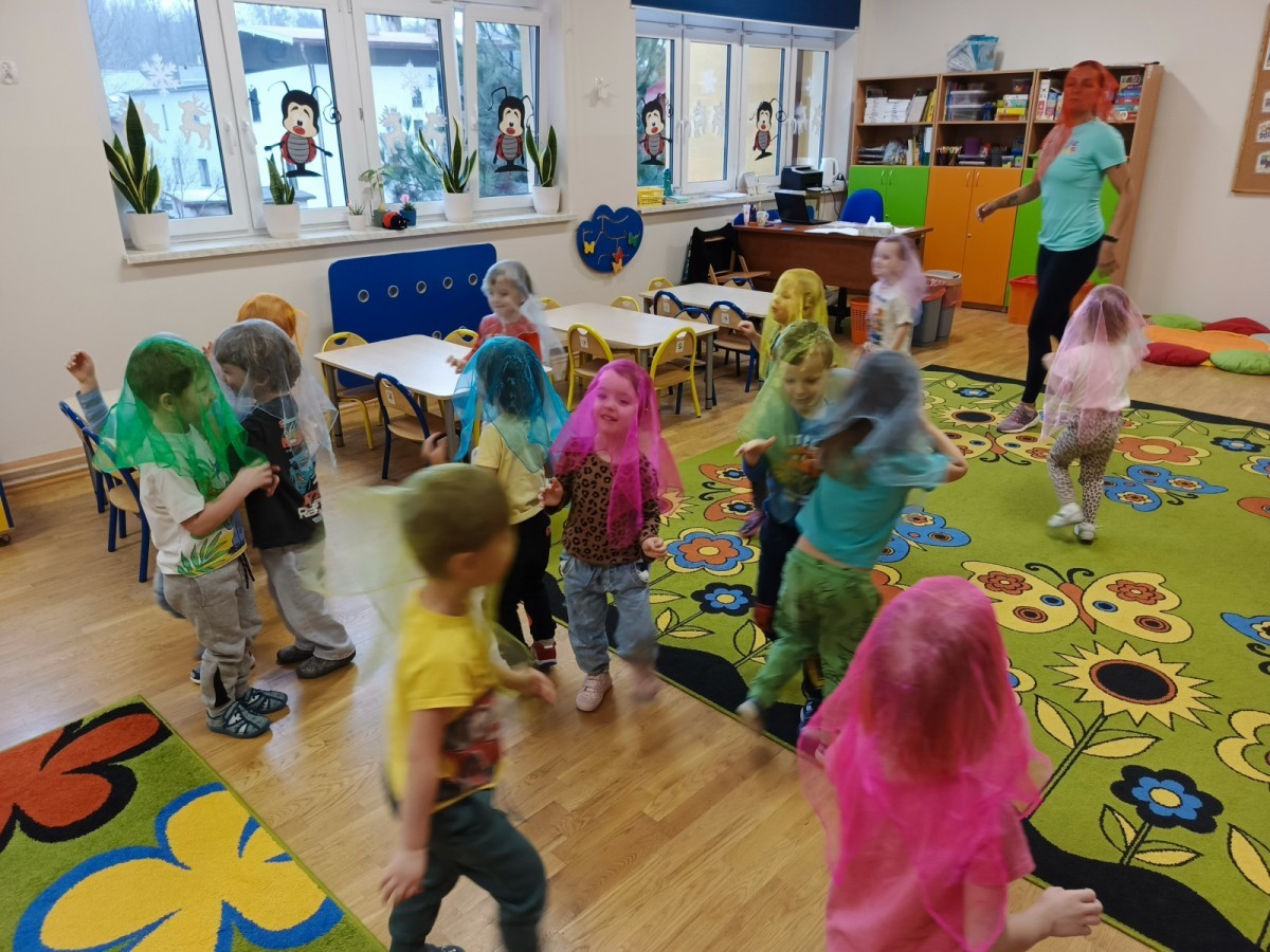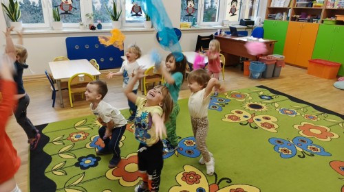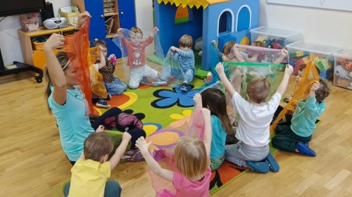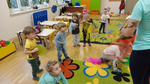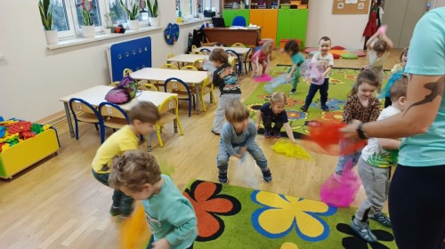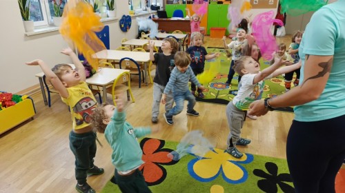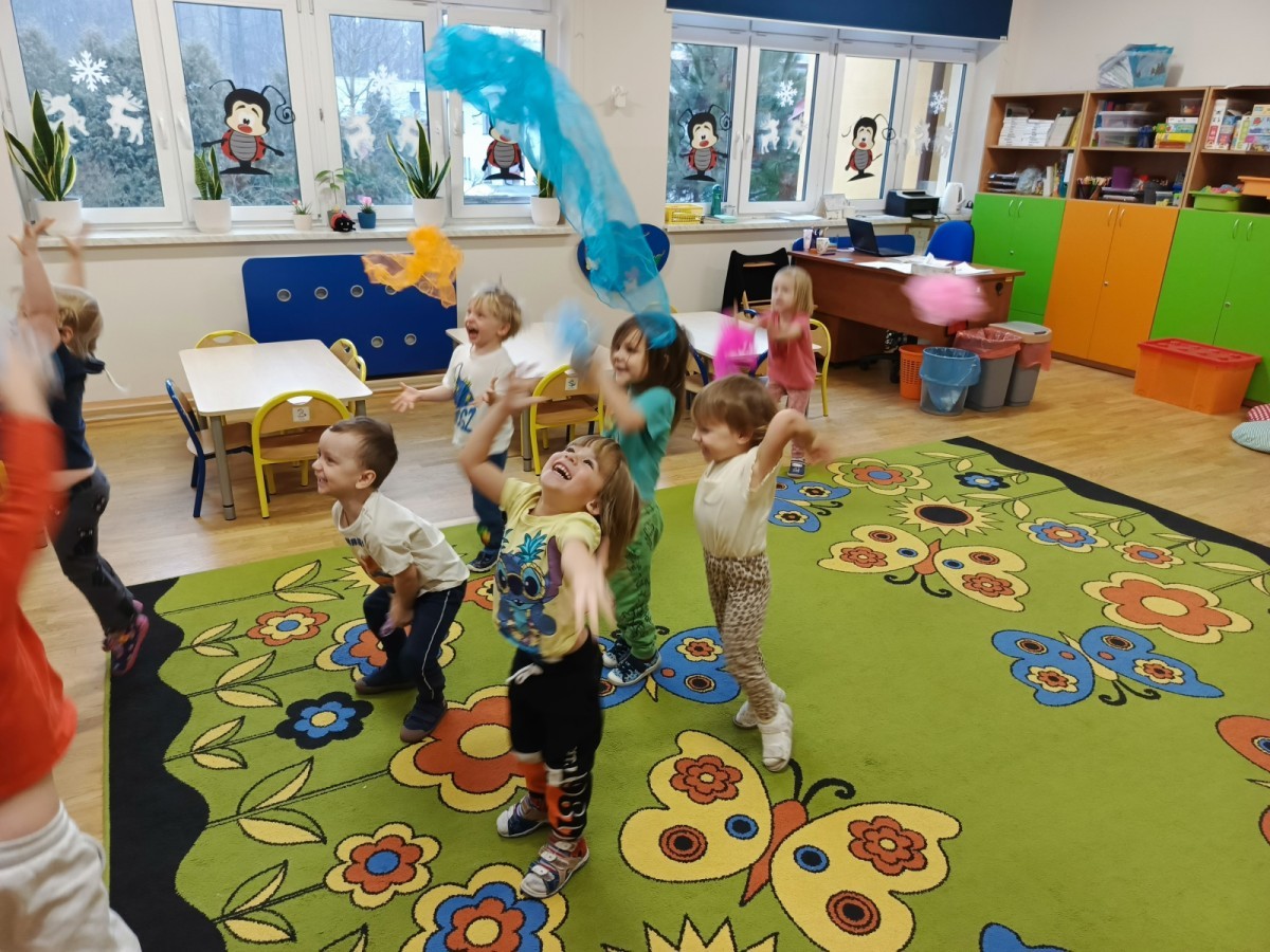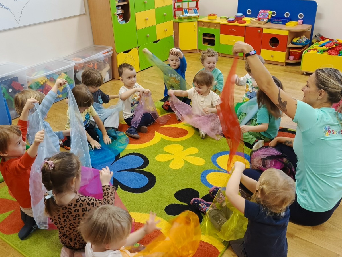 Za nami kolejne spotkanie w ramach zajęć Super Smyki. Tym razem "w roli głównej" kolorowe chustki.