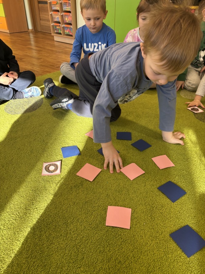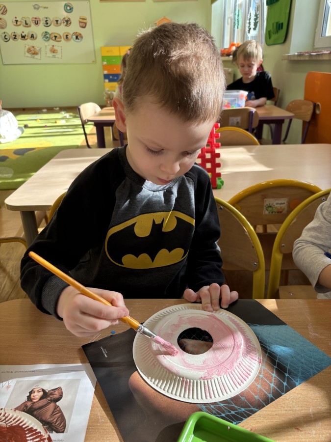 Dzieci poznały historię tego wyjątkowego święta oraz dowiedziały się, jakie smakołyki tradycyjnie goszczą na stołach w Tłusty Czwartek. Rozmawialiśmy o pączkach i faworkach, a przy okazji ćwiczyliśmy pamięć i spostrzegawczość.