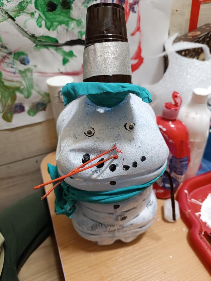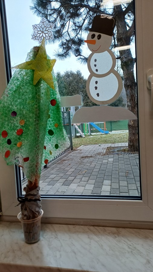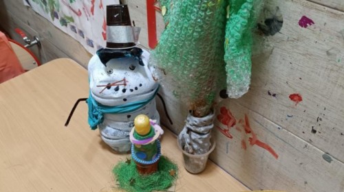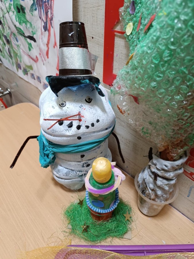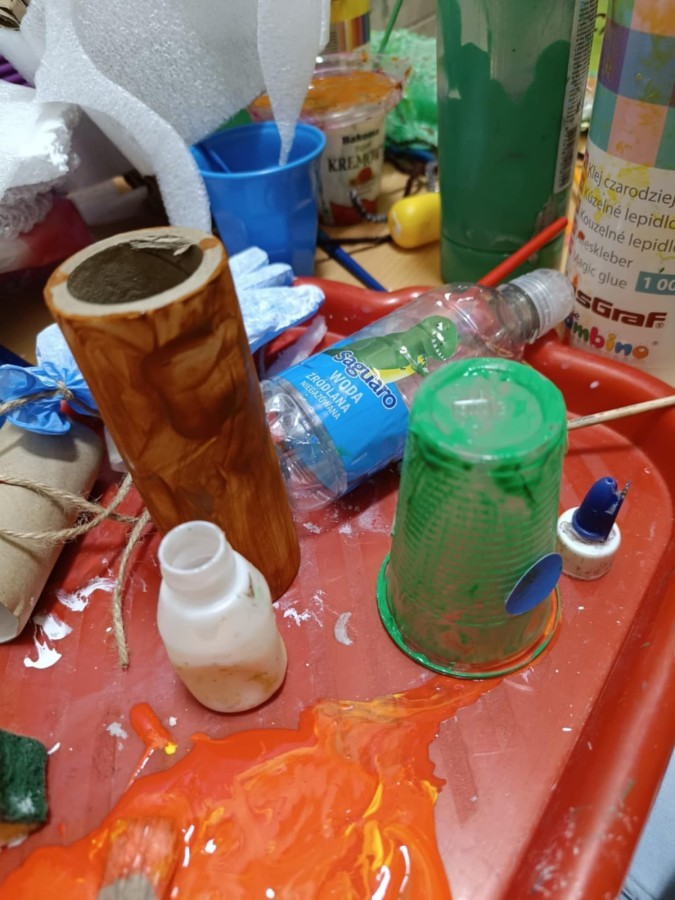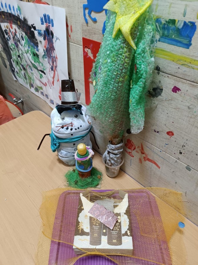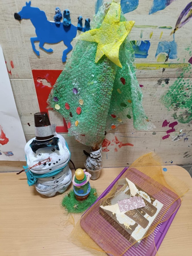 Starszaki przygotowując się do Świąt i na spotkanie z Mikołajem, przygotowały zimowe i świąteczne ozdoby z odpadów i zużytych przedmiotów, a następnie udekorowały nimi przedszkole. Tym samym zrealizowały działanie kreatywne w konkursie Szanuj Energię, Chroń Klimat..