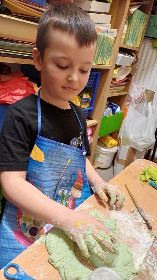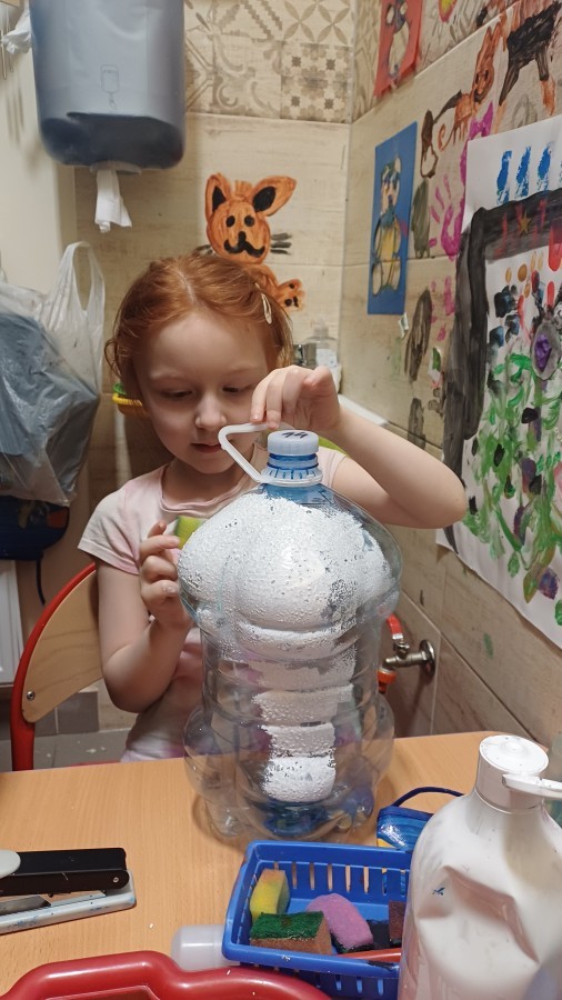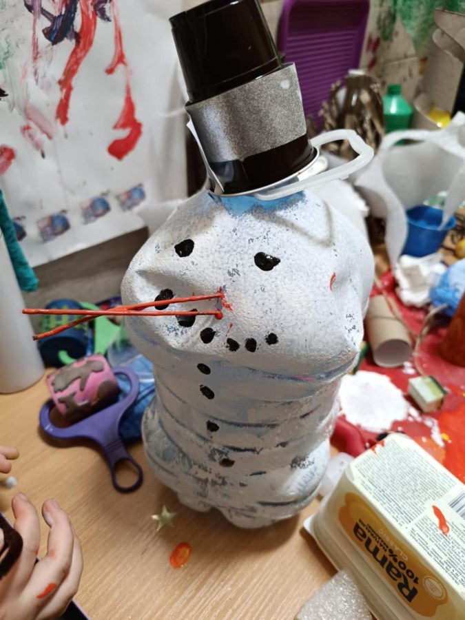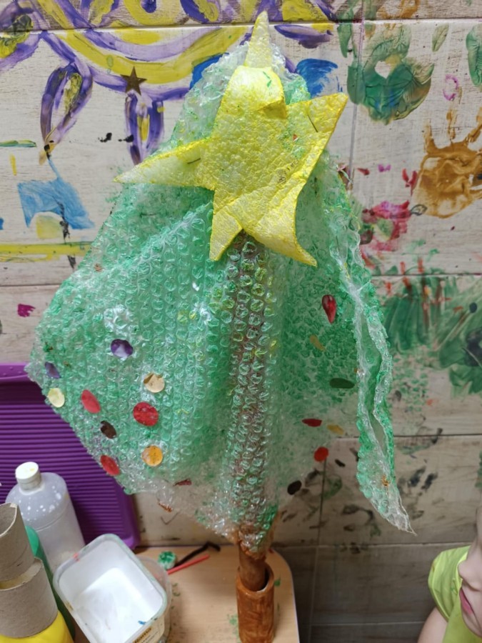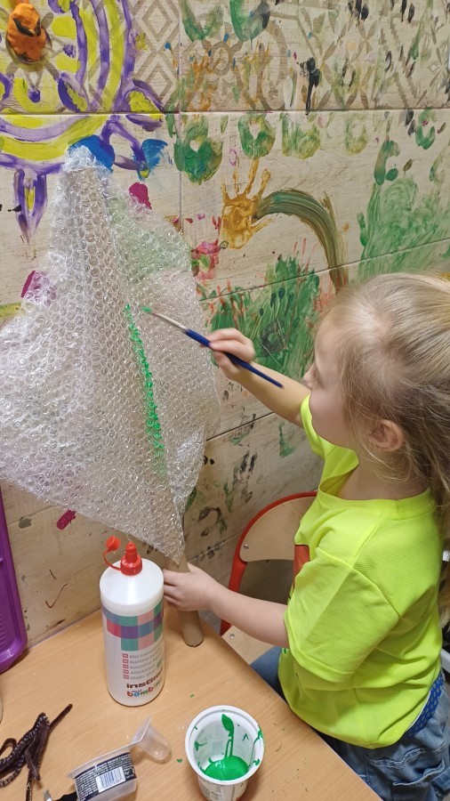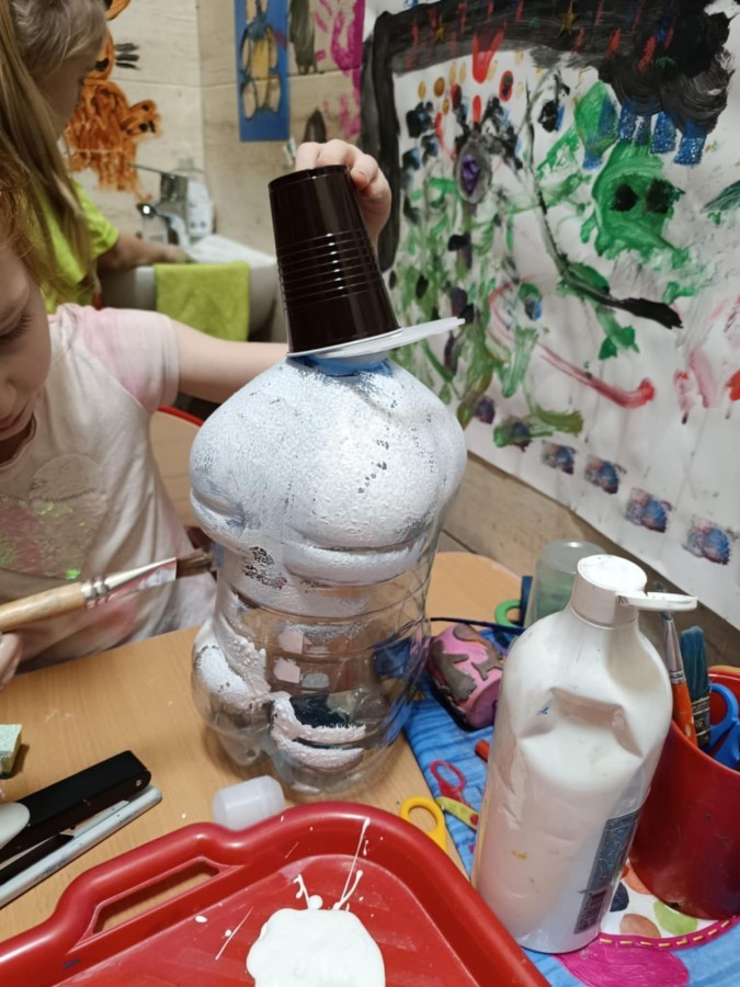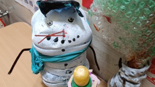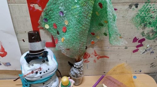 Starszaki przygotowując się do Świąt i na spotkanie z Mikołajem, przygotowały zimowe i świąteczne ozdoby z odpadów i zużytych przedmiotów, a następnie udekorowały nimi przedszkole. Tym samym zrealizowały działanie kreatywne w konkursie Szanuj Energię, Chroń Klimat..