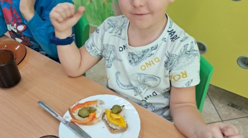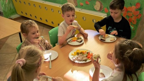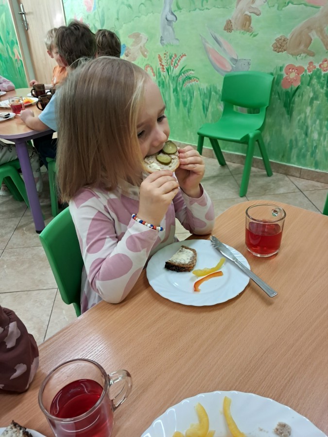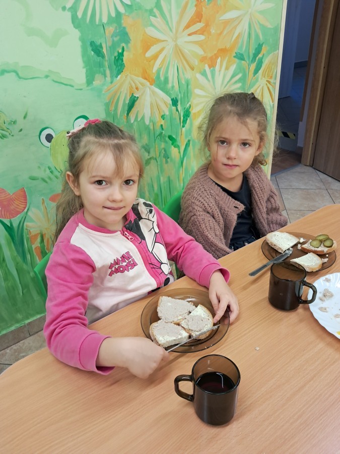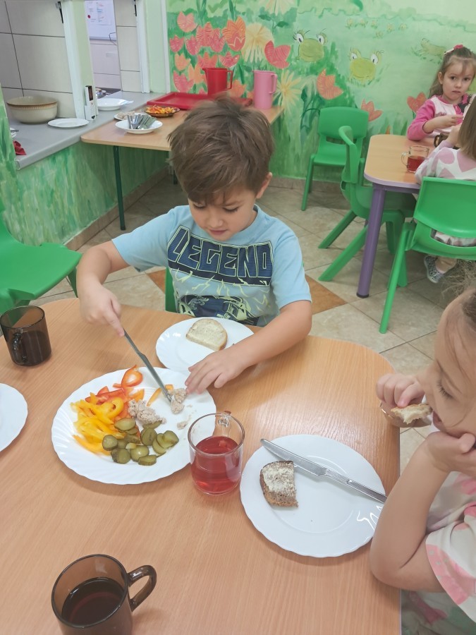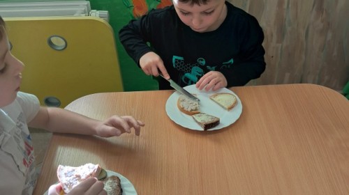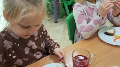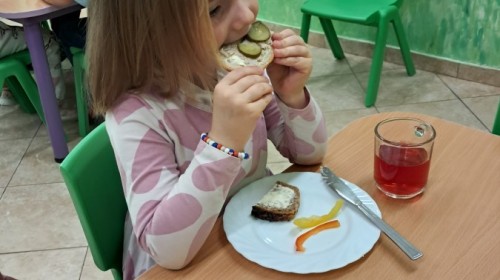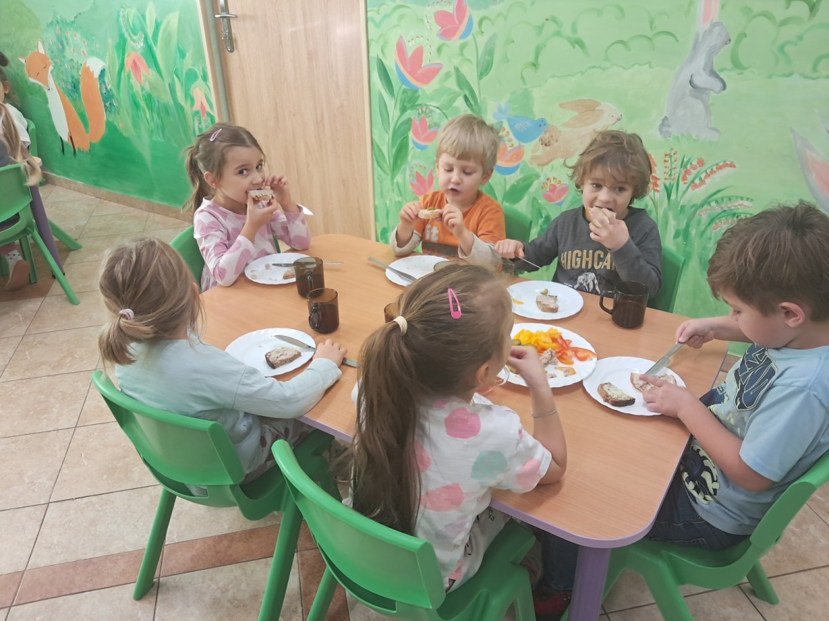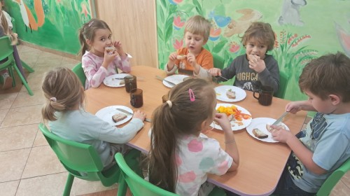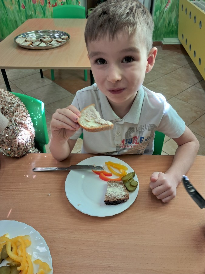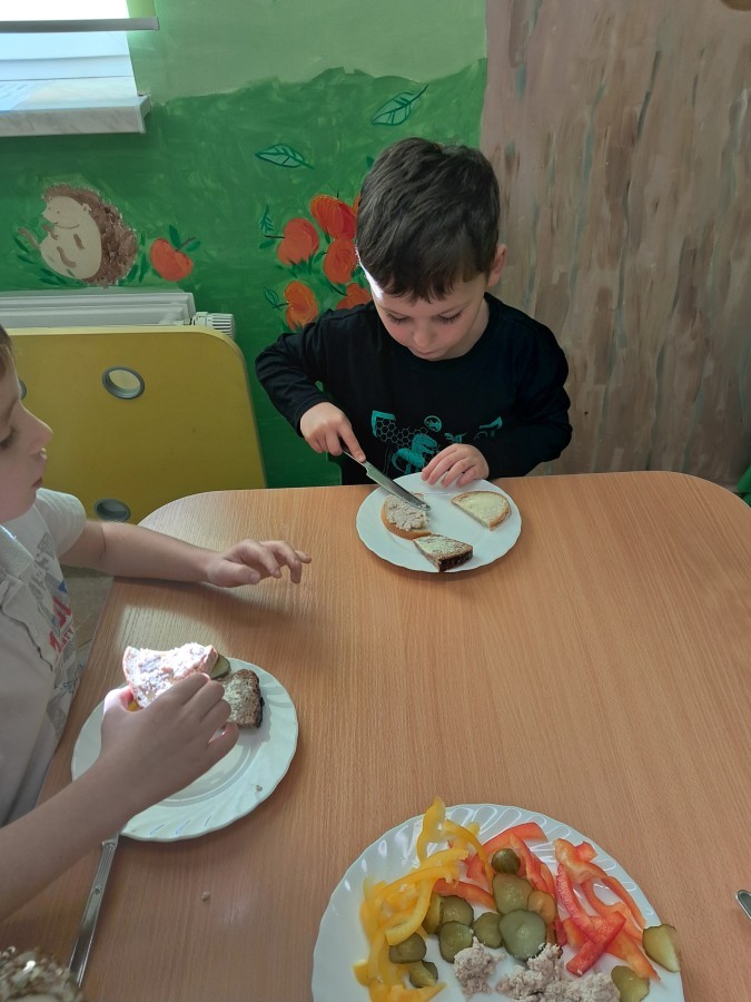 Podczas samodzielnego przygotowania śniadanka Liski estetycznie sporządziły sobie kanapki oraz ćwiczyły umiejętność posługiwania się nożem. Tak wykonany posiłek szybko znikał z talerza, a dzieci opuściły jadalnię z pełnymi brzuszkami i uśmiechami na twarzach.
