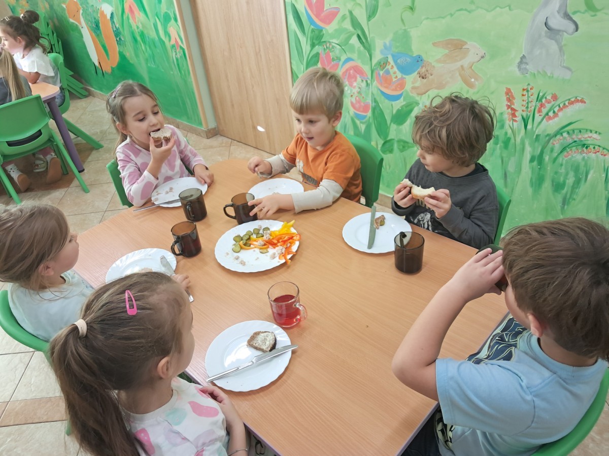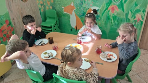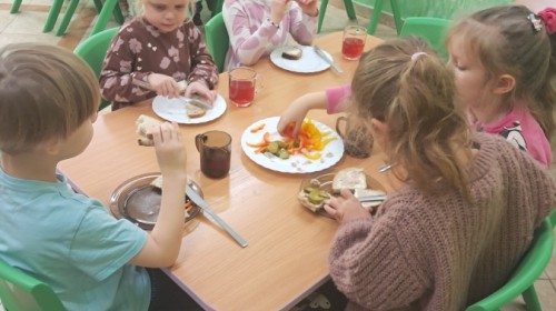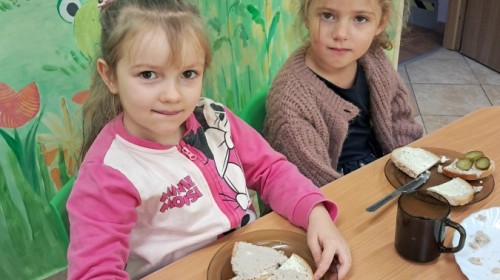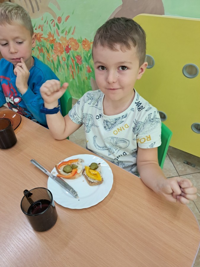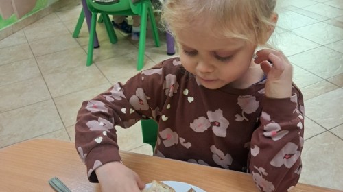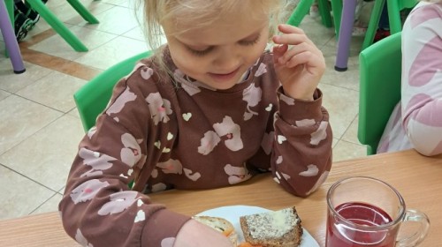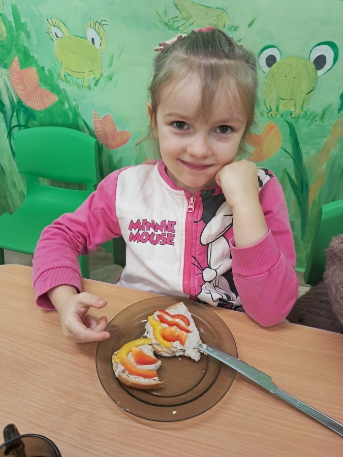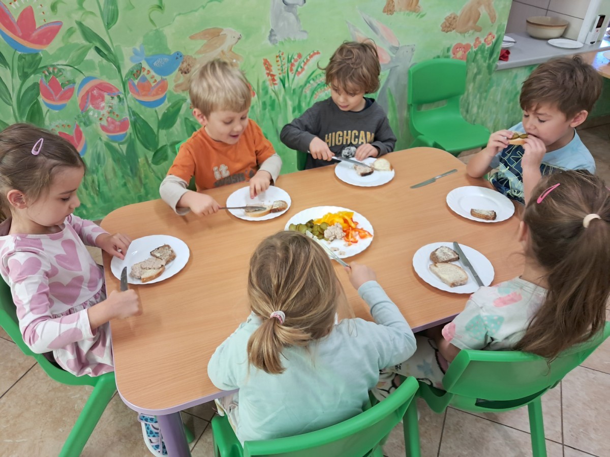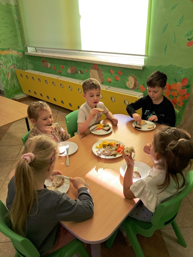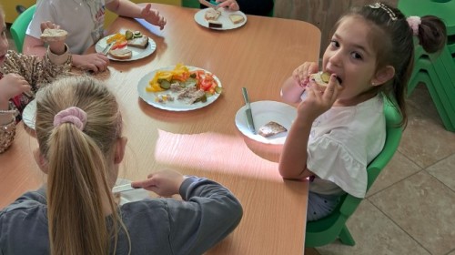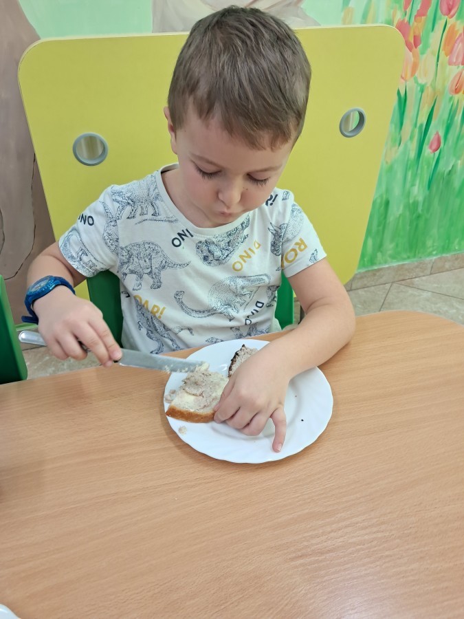 Podczas samodzielnego przygotowania śniadanka Liski estetycznie sporządziły sobie kanapki oraz ćwiczyły umiejętność posługiwania się nożem. Tak wykonany posiłek szybko znikał z talerza, a dzieci opuściły jadalnię z pełnymi brzuszkami i uśmiechami na twarzach.