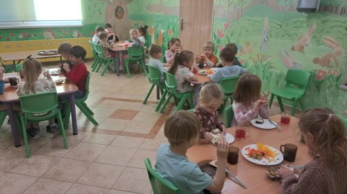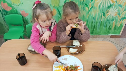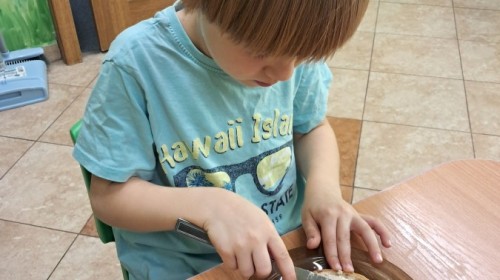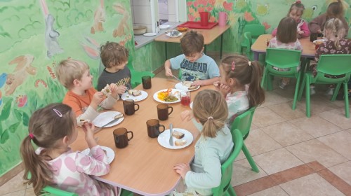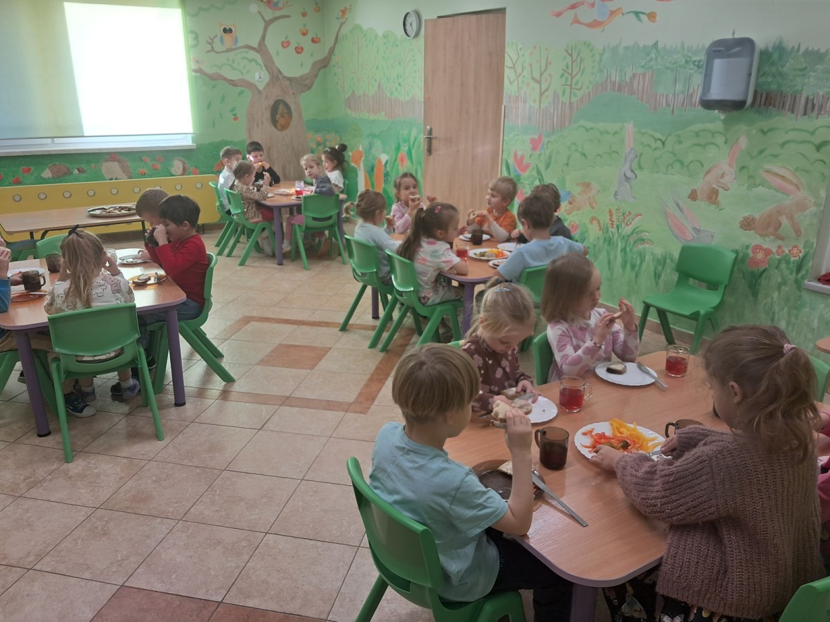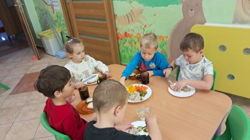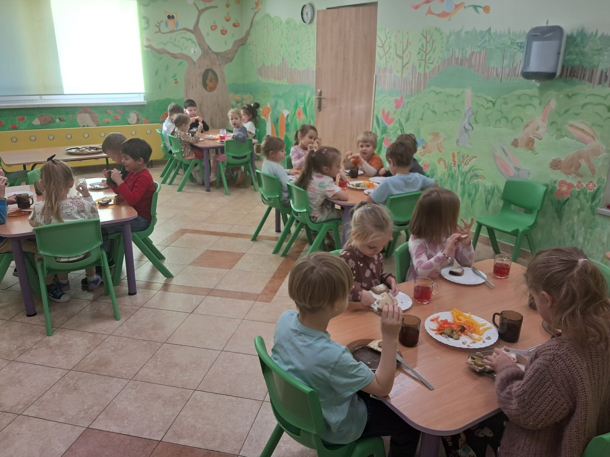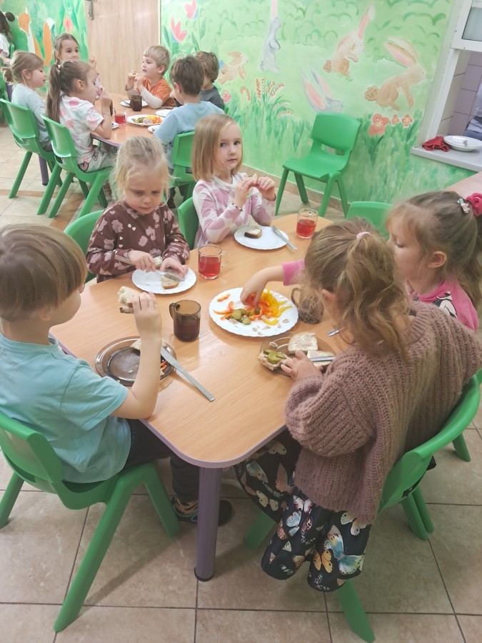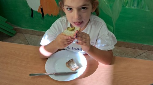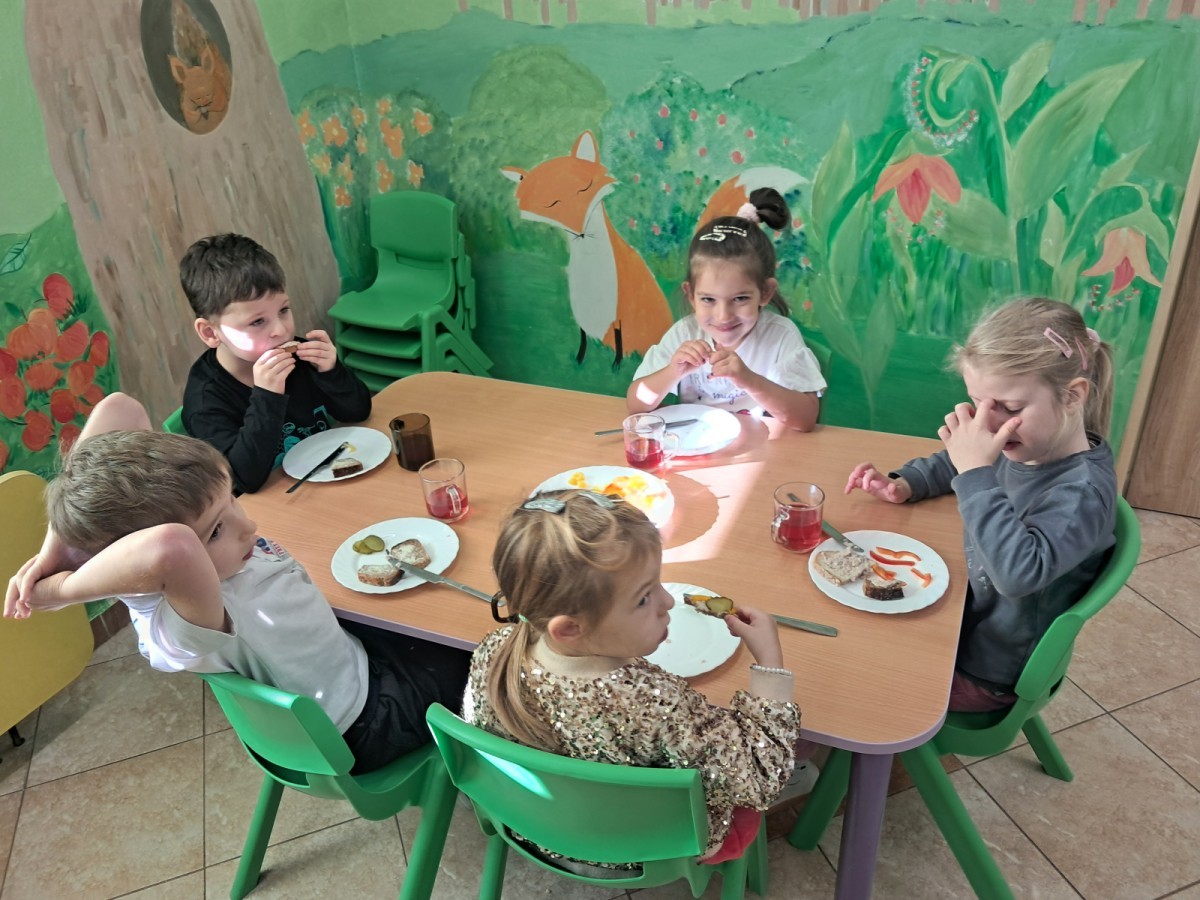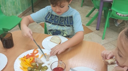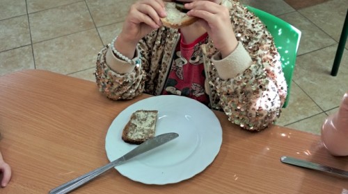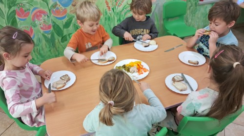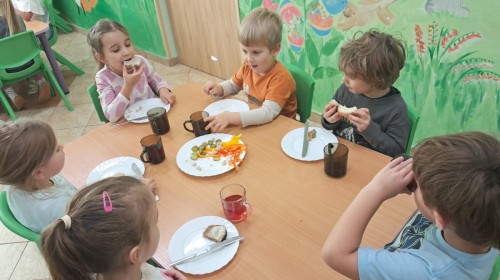Podczas samodzielnego przygotowania śniadanka Liski estetycznie sporządziły sobie kanapki oraz ćwiczyły umiejętność posługiwania się nożem. Tak wykonany posiłek szybko znikał z talerza, a dzieci opuściły jadalnię z pełnymi brzuszkami i uśmiechami na twarzach.